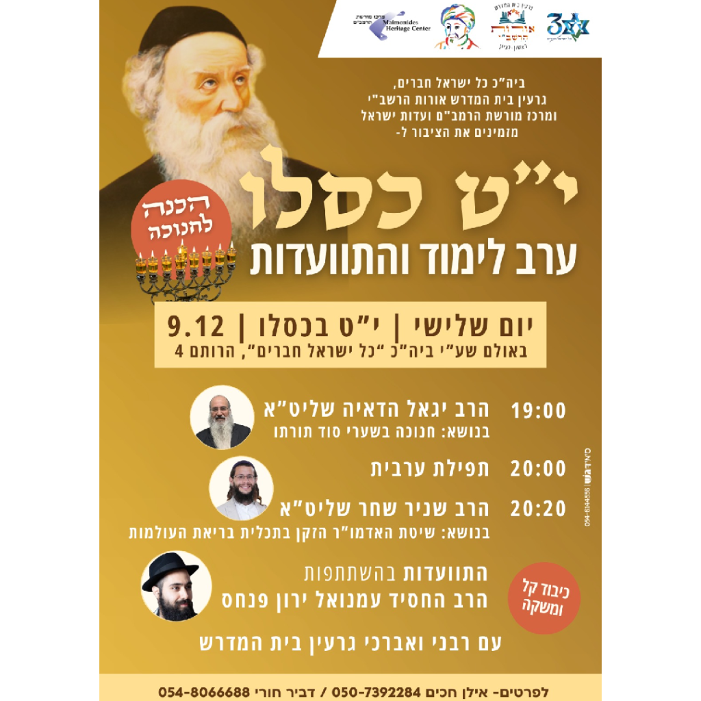 יום שלישי | י"ט כסליו | 9.12.2025 | 19:00