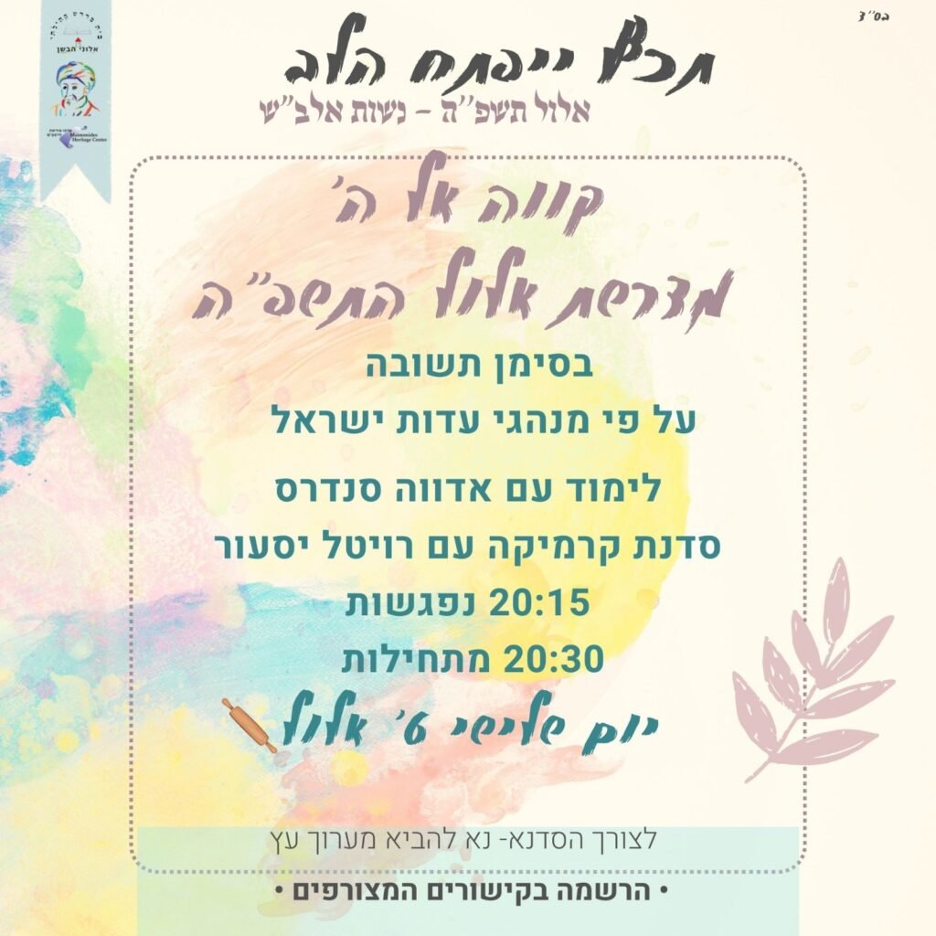 יום שלישי | ט' אלול | 02.09.25 | 20:15