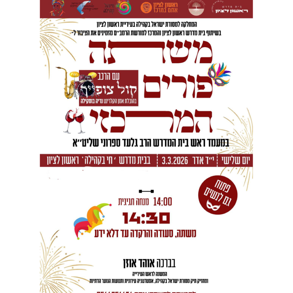 יום שלישי | י"ד אדר | 03.03.2026 | 14:00