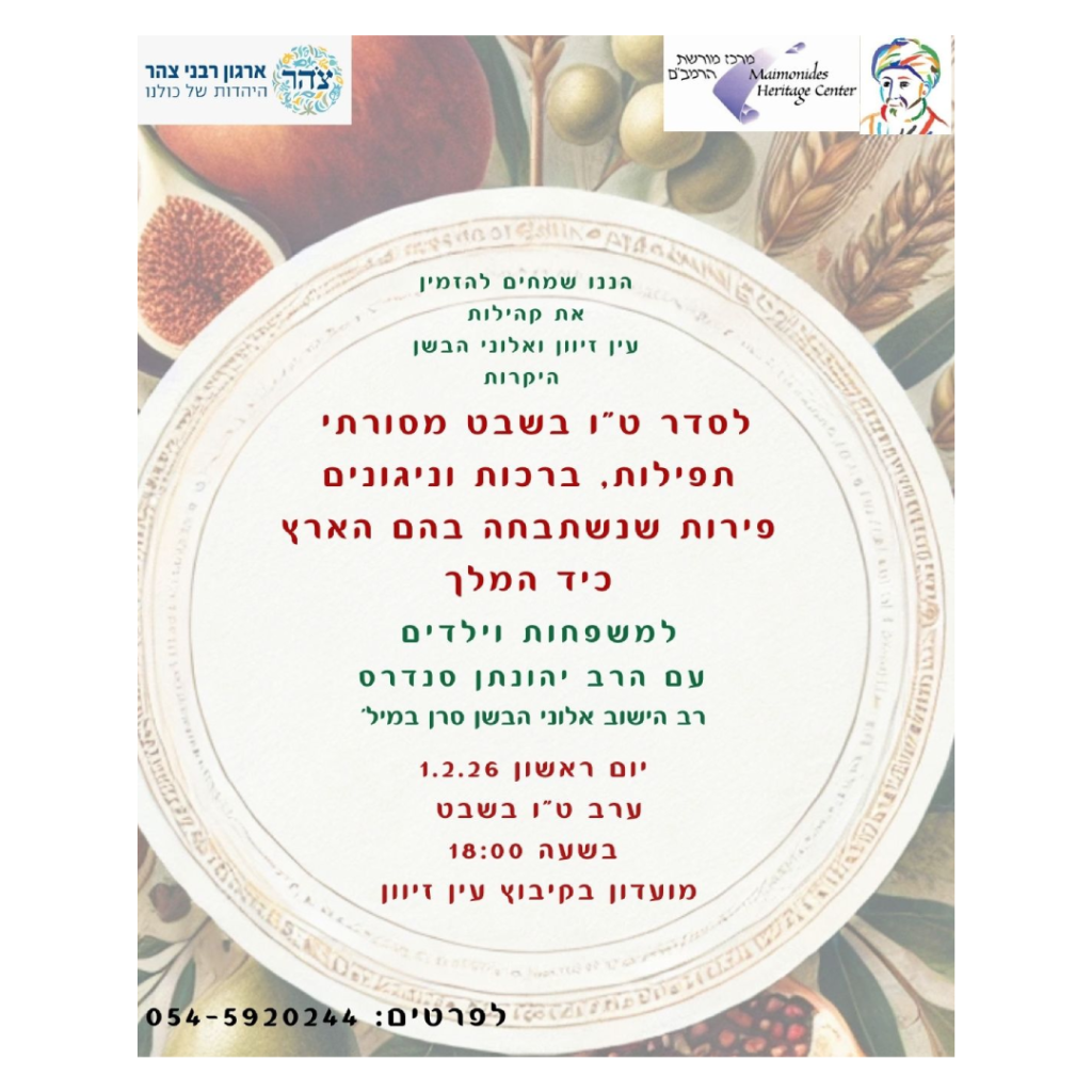 יום ראשון | י"ד בשבט | 01.02.2026 | 18:00