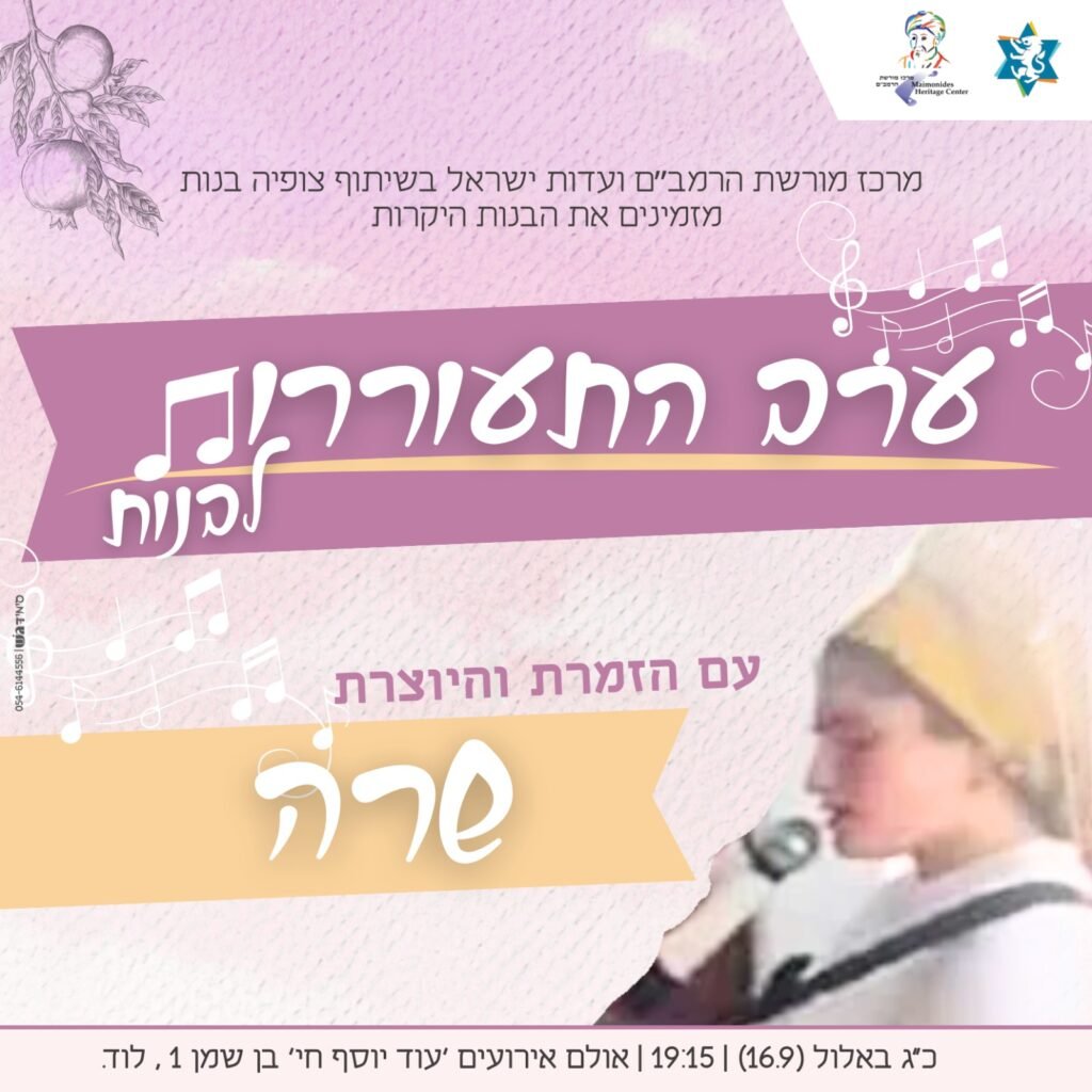 מרכז מורשת הרמב"ם בשיתוף צופי'ה בנות מזמינים את הבנות היקרות לערב התעוררות עם הזמרת והיוצרת שרה
