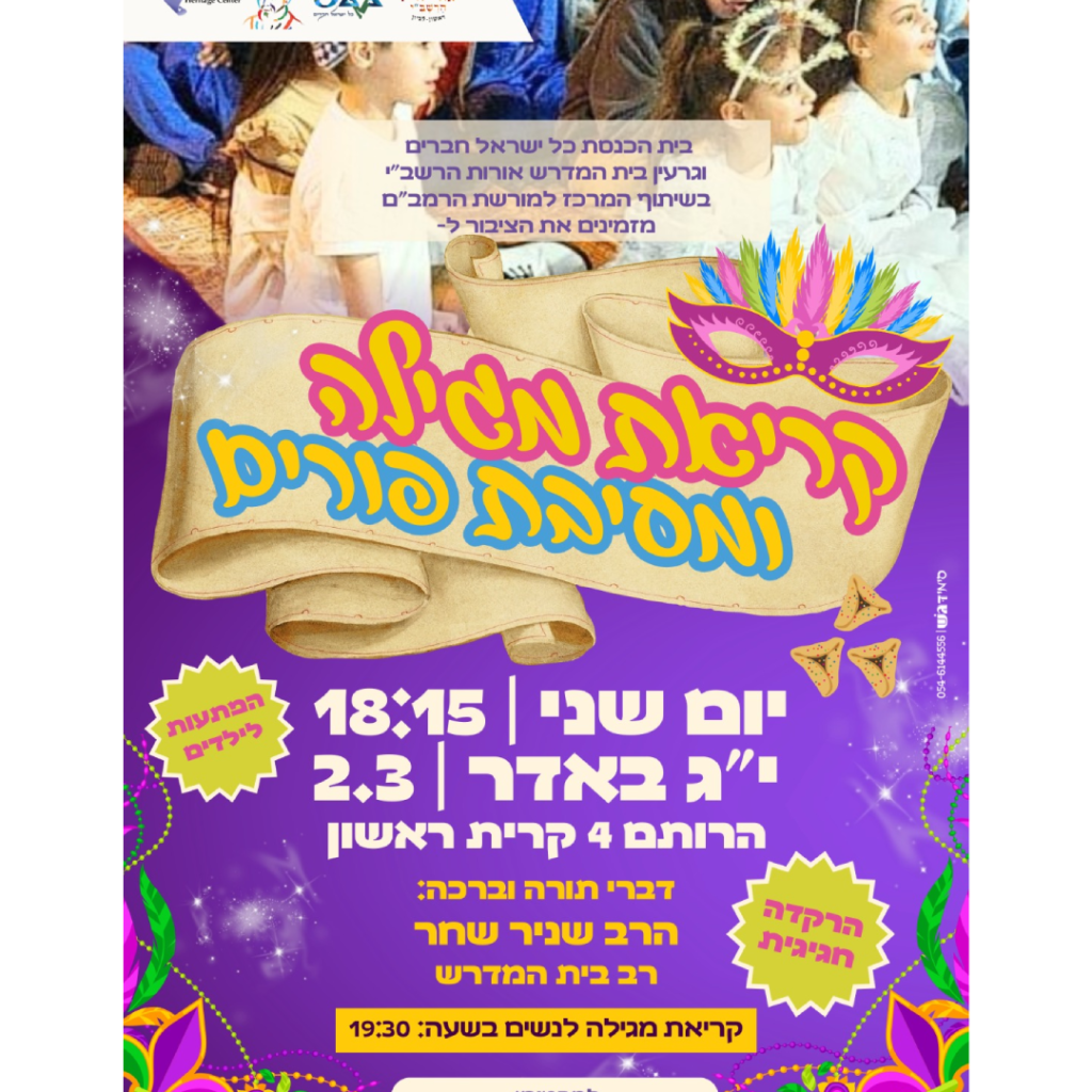 קריאת מגילה ומסיבת פורים עם הרב שניר שחר